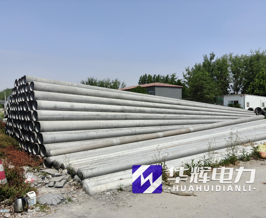8米红古水泥电线杆通常采用钢筋混凝土离心成型工艺,杆体呈锥形结构,梢径150mm-190mm,根径230mm-270mm,壁厚40mm-50mm。根据标准GB/T4623-2014,产品混凝土强度等级不低于C40,主筋采用HRB400级钢筋,配筋量根据抗裂弯矩要求设计,标准抗裂弯矩可达12-18kN·m,破坏弯矩不小于24kN·m。杆体重量约0.5-0.8吨,运输安装便捷,适合人工或小型机械施工。